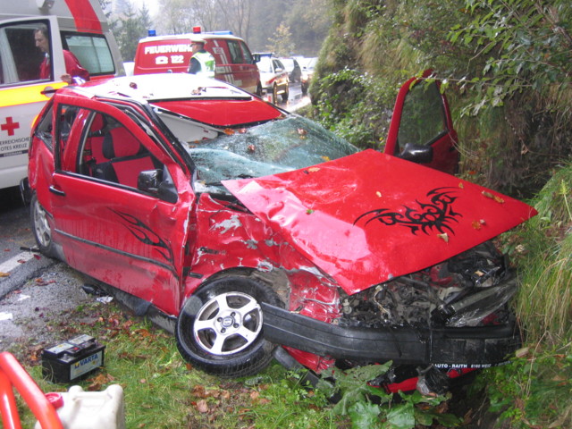 Verkehrsunfall mit Personenschaden. Zwei Fahrzeuge sind kollidiert.