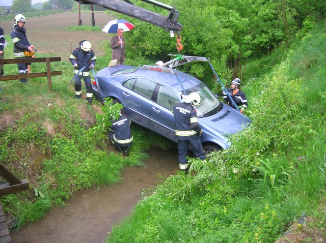 Ein PKW ist von der Straße abgekommen und in steckt in einem Bach fest. FF Floing ist bereits vor Ort.
