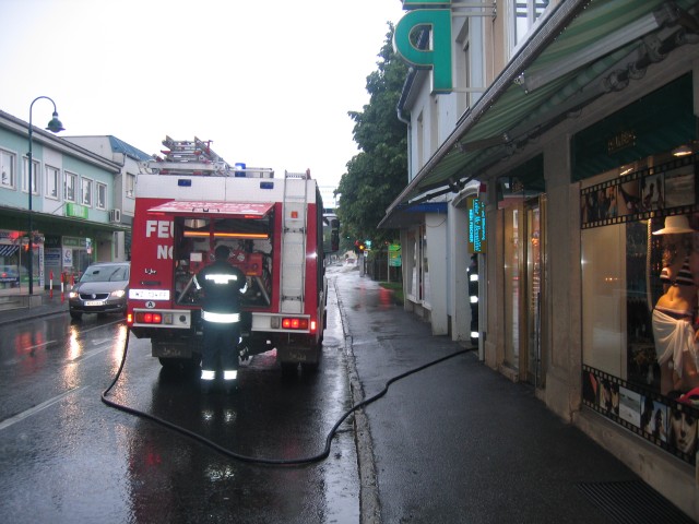 Durch den Starkregen ist der Regeneinlauf bzw. Kanal verstopft.