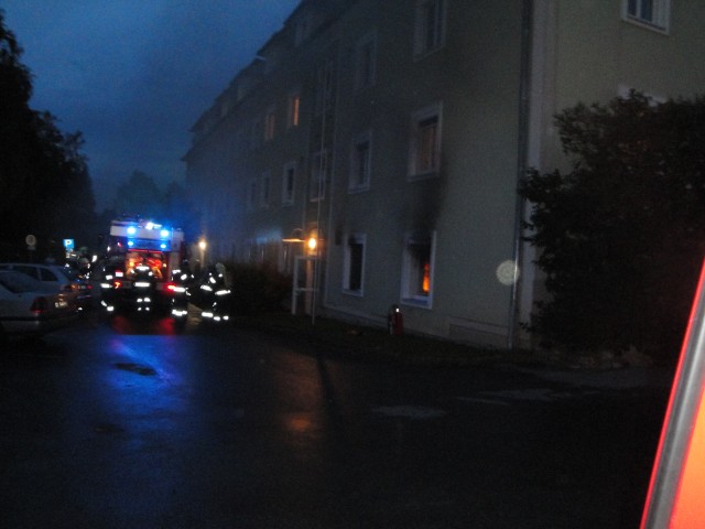 Starke Rauchentwicklung in einer Wohnung im Erdgeschoß. Eine Person wurde bereits aus der Wohnung gerettet.
