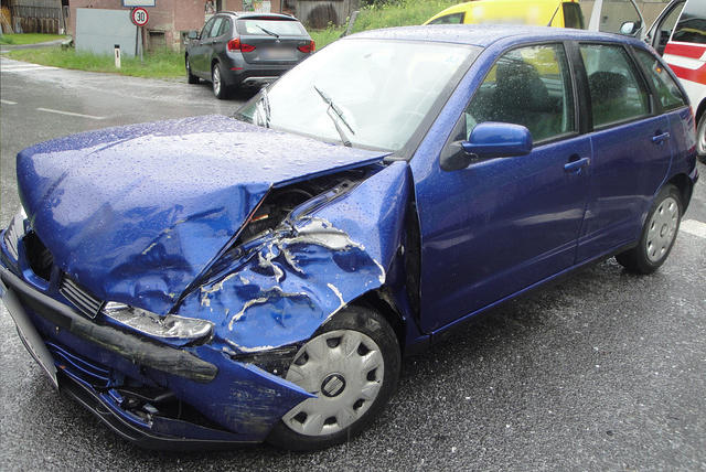Zwei Fahrzeuge sind im Kreuzungsbereich kollidiert. Eine Person ist verletzt und wird vom Roten Kreuz bereits versorgt.