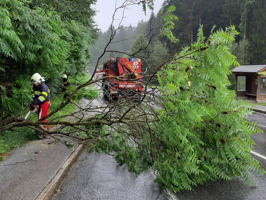Hochwasserkontrolle im Löschgebiet, Sperre der Weizbachpromenade, Auspumpen mehrerer Keller, Absichern von Straßen auf Grund von Murenabgängen, Beseitigen von Verklausungen in Bächen sowie Freimachen der Straßen nach Murenabgängen, Unterstützung der Gemeinden, Straßenreinigung