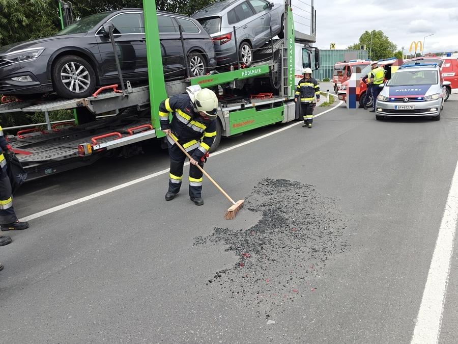 Absichern der Unfallstelle, Binden der ausgelaufenen Betriebsmittel, Freimachen der Bundesstraße