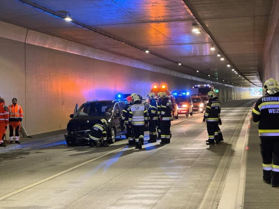 Auffahrunfall mit zwei verletzten Personen im Tunnel Weiz 1