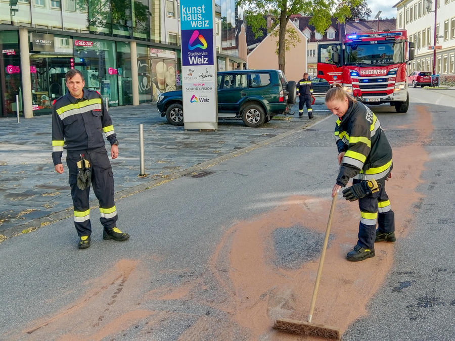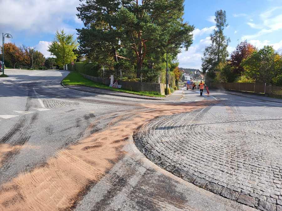 Absichern der Einsatzstelle, Binden des ausgelaufenen Öls mittels Ölbindemittel.