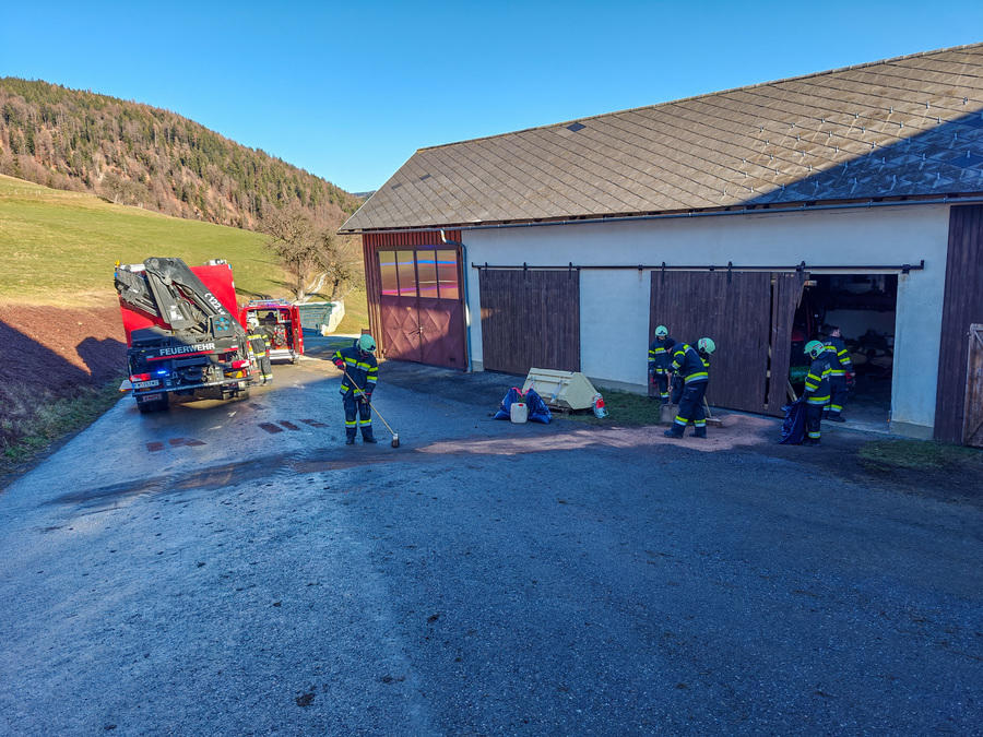 Absichern der Einsatzstelle, Binden der Ölspur, Verständigung Gemeinde