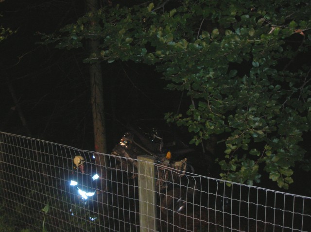 Nach einem Verkehrsunfall ist ein PKW von der Straße abgekommen und in einem Waldstück liegen geblieben. Die FF Oberfeistritz ist vor Ort.
