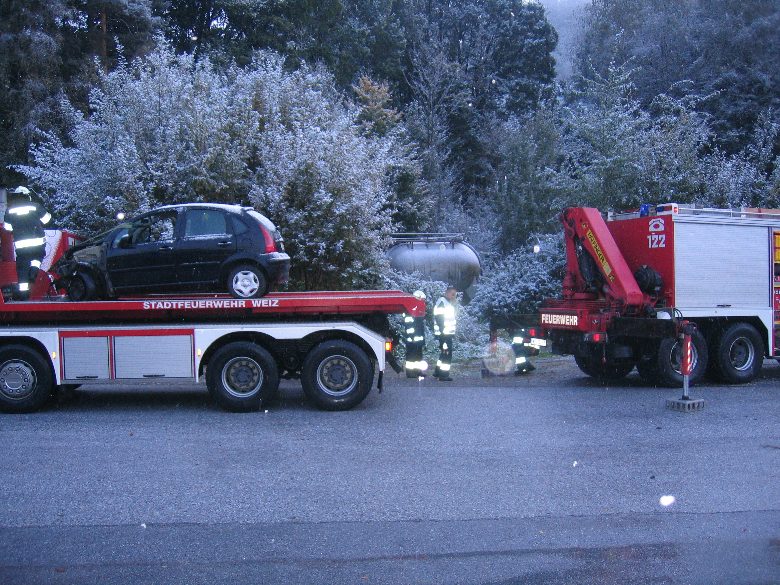 Fünf PKW sind in einen Unfall verwickelt. Die FF Oberfeistritz ist bereits vor Ort.