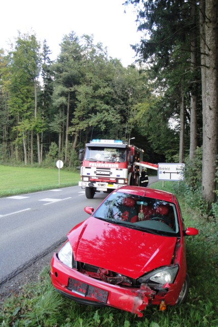 Ein PKW ist beim Bahnübergang in Büchl mit einem Zug kollidiert. Es sind keine Personen verletzt.