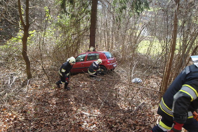 Ein PKW ist von der Fahrbahn abgekommen und hängt fest.