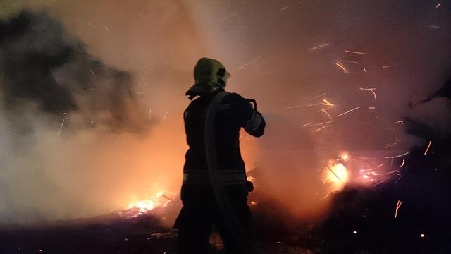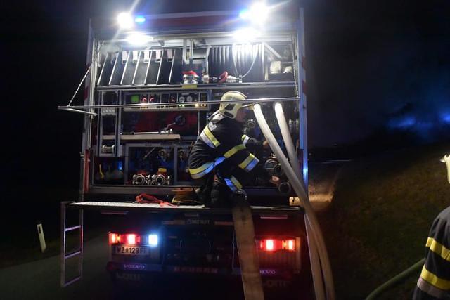 Löschen des Brandes mit mehreren C- und HD-Rohren, Wasserversorgung vom nahe gelegenen Löschwasserbehälter, Nachkontrolle mit Wärmebildkamera, Zerteilen des Häckselgutes mit Radlader und Nachlöscharbeiten.