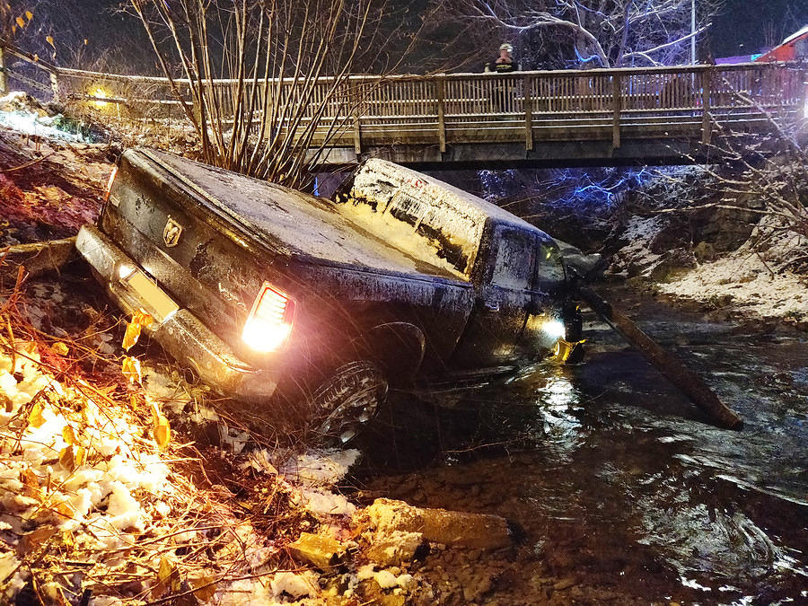 Ein Pickup Truck ist von der Straße abgekommen, hat ein Holzgeländer auf der Länge von ca. 40m niedergerissen und ist in den Weizbach gestürzt. Ein Holzteil hat sich durch die Frontscheibe ins Fahrzeuginnere gebohrt. Es ist keine Person eingeklemmt.