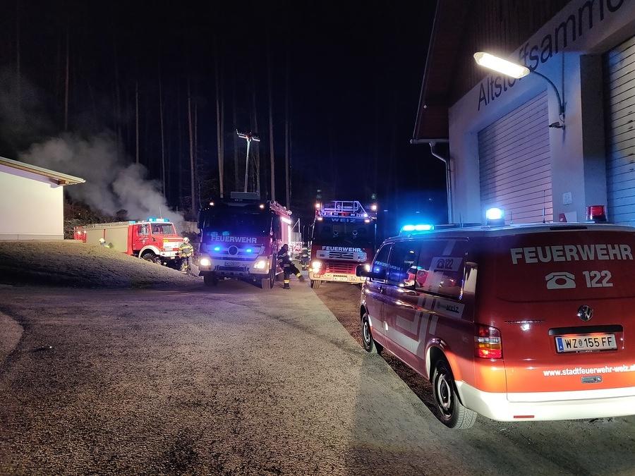 Ein Teil des Häckselgutablageplatzes steht in Brand