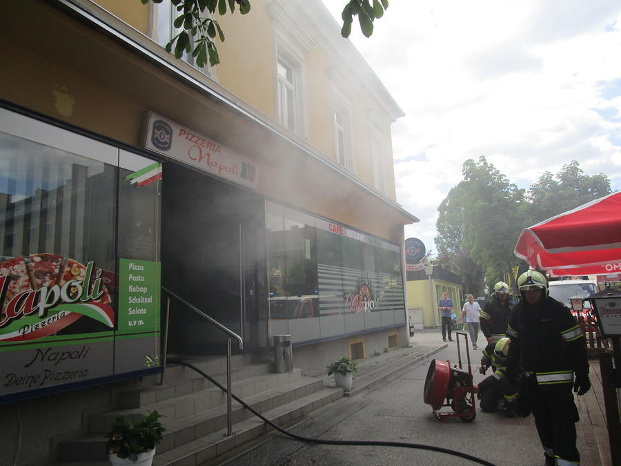 Küche eines Lokals steht in Vollbrand, das Lokal und die angrenzenden Wohnungen sind massiv verraucht