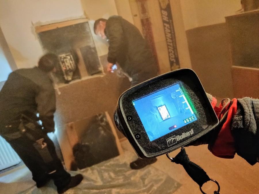 Erkunden der Lage, Verständigung Rauchfangkehrer, Ausleuchten der Einsatzstelle, Benetzen der Dachhaut mittels HD-Rohr, Kontrolle des Kaminbereichs mittels Wärmebildkamera, Öffnen einer Gipskartonwand mittels Rettungssäge, Druckbelüften des Gebäudes, Kühlen des Kamins, Löschen eines Entstehungsbrandes bzw. Benetzen des Kaminbereichs und angrenzender Bauteile mittels CAFS-Löscher