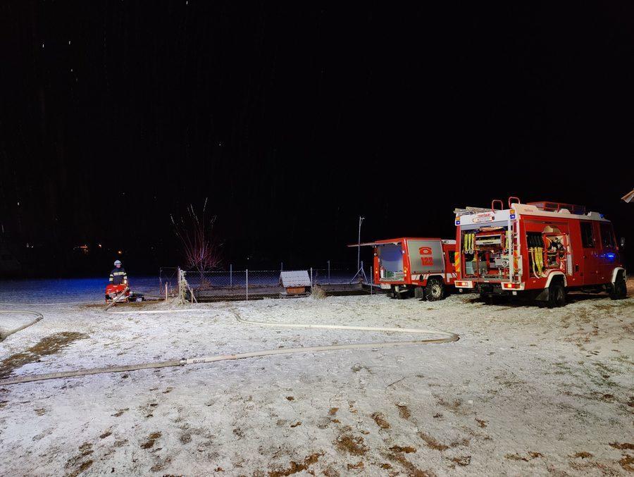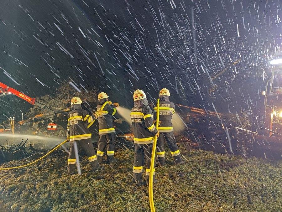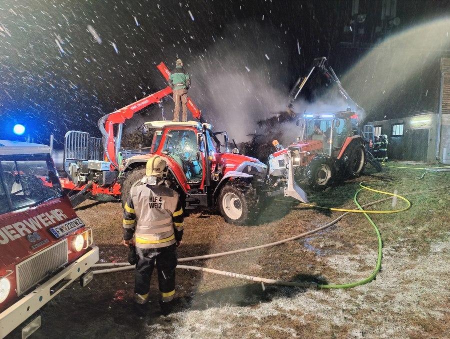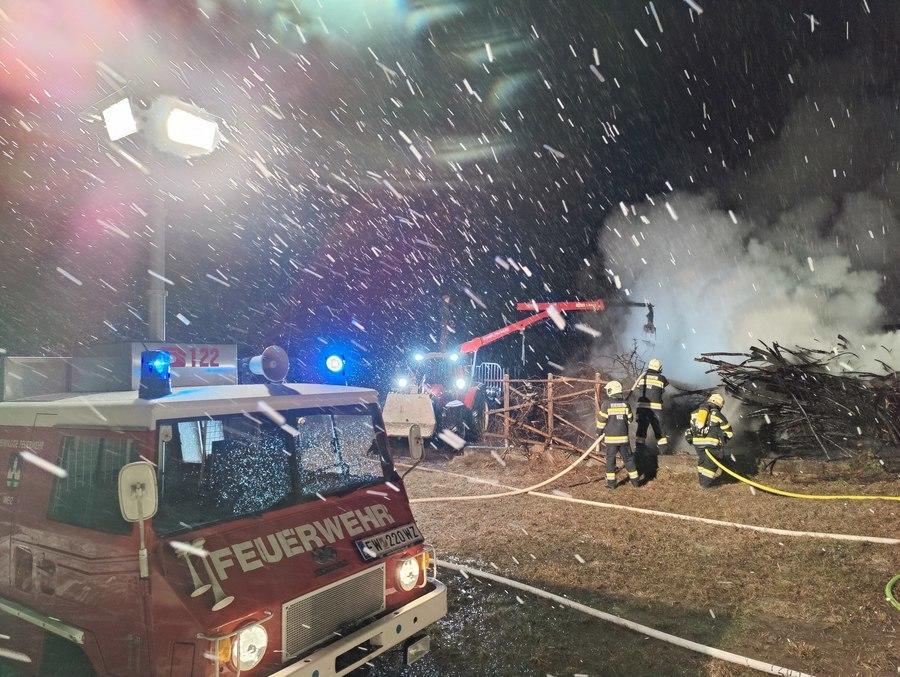 Löschen des Brandes mit 5 C-Rohren gemeinsam mit der FF Hohenkogl, Schützen des Wirtschaftsgebäudes mittels Hydroschild, Umlagern des Hackguthaufens mit zwei Forstkränen, Wasserbezug vom Löschteich, Einrichten eines Pendelverkehrs zur Löschwasserzubringung mit zwei Tanklöschfahrzeugen, Ausleuchten der Einsatzstelle mittels KLF-A, Kontrolle mittels Wärmebildkamera