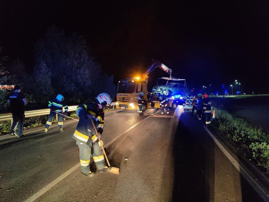 Absichern und Ausleuchten der Unfallstelle, Errichten einer Umleitung, Binden der ausgelaufenen Betriebsmittel, Verständigung der Straßenmeisterei, Unterstützung des Abschleppdienstes, Freimachen der Bundesstraße