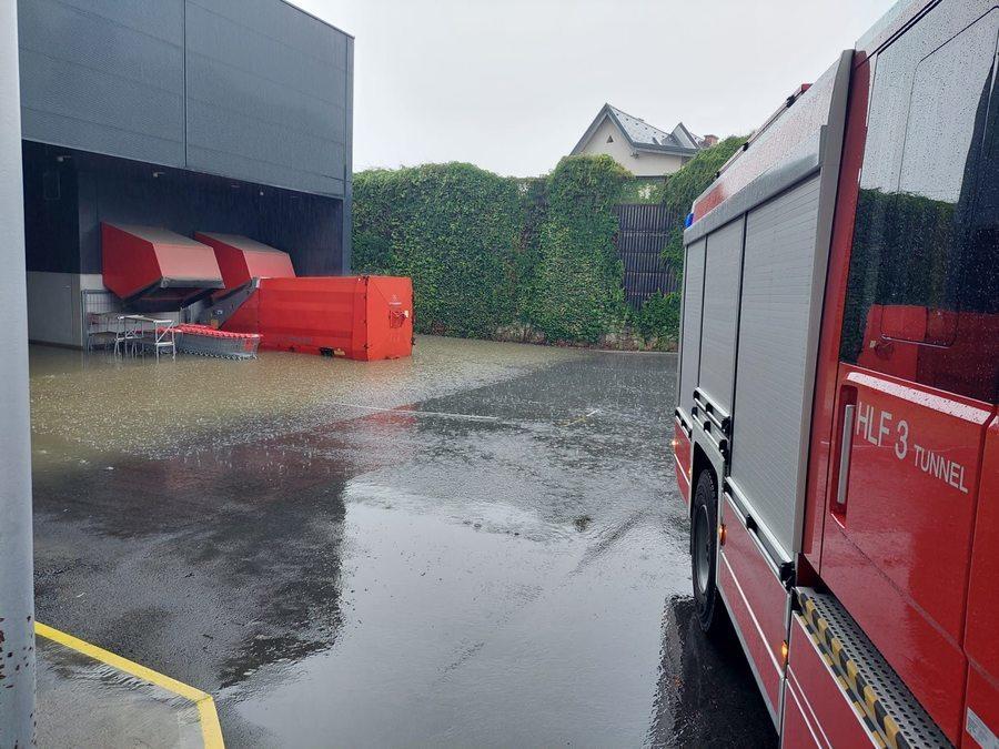 Durch den Starkregen (67mm in kurzer Zeit an der Messstelle Florianigasse) sind zahlreiche Keller, eine Laderampe sowie eine Unterführung überflutet