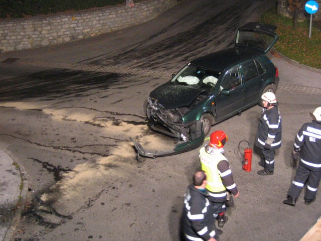 Fahrzeugbergung mittels SRF-Kran, binden von ausgetretenen Motorflüssigkeiten.