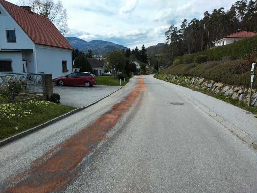 Eine ca. 1km lange Ölspur befindet sich auf der Fahrbahn