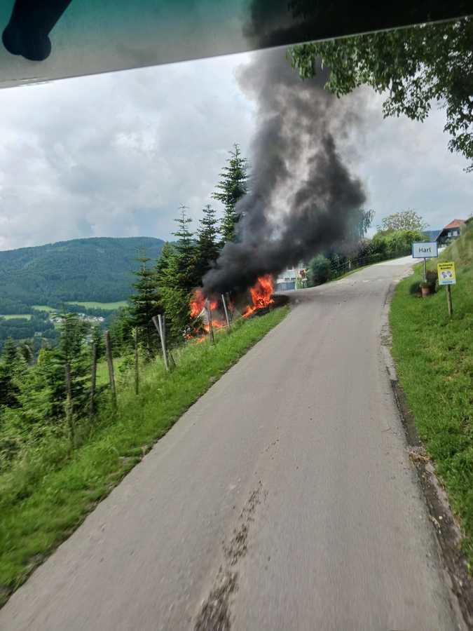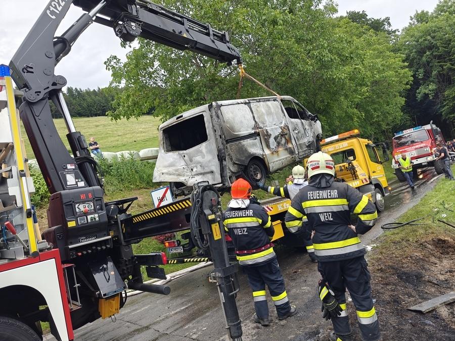 Als am Dienstag, dem 11. Juni 2024 gegen 15:00 Uhr die Sirenen in Weiz ertönten, war die dunkle Rauchsäule bereits kilometerweit zu sehen: Ein Kleinbus stand im Naaser Ortsteil Harl in Vollbrand.