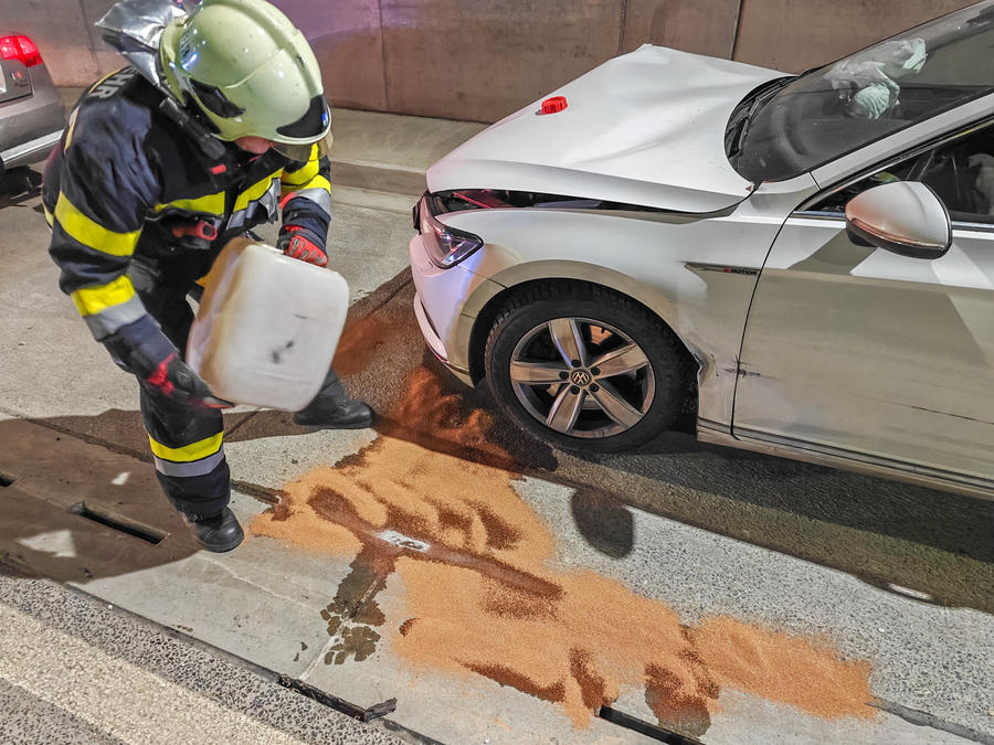 Absichern der Unfallstelle, Veranlassung einer Tunnelsperre, Binden der ausgelaufenen Betriebsmittel, Verständigung Straßenmeisterei, Freimachen der Bundesstraße