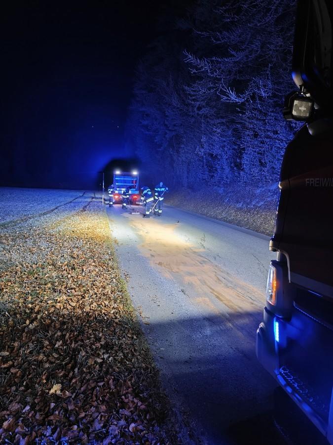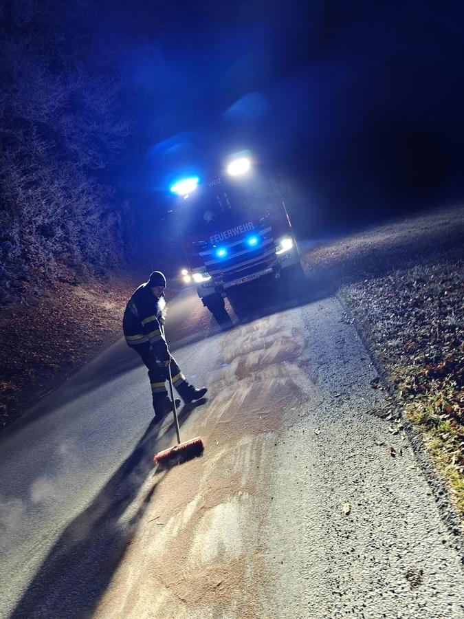 Absichern der Einsatzstelle, Binden der Ölspur, Verständigung Gemeinde