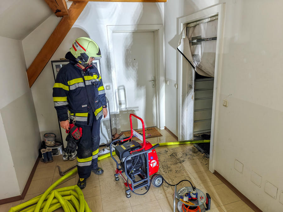 Der Brand im Bereich des Elektroverteilerkastens konnte mittels C-Rohr rasch gelöscht werden. Im Anschluss wurde die Einsatzstelle ausgeleuchtet und mit einer Wärmebildkamera kontrolliert. Um versteckte Glutnester auszuschließen, wurde ein Teil der angrenzenden Trockenbauwand geöffnet. Das alarmierte Energieversorgungsunternehmen stellte die Spannungsfreiheit der elektrischen Anlage der Wohnung sicher. Nach rund eineinhalb Stunden konnte der Einsatz beendet werden. Verletzt wurde niemand, durch die schnelle Alarmierung und den raschen Einsatz konnte eine weitere Brandausbreitung verhindert werden.
