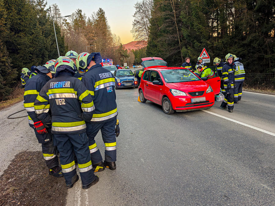 Auffahrunfall mit zwei beteiligten Fahrzeugen, drei Personen sind verletzt.