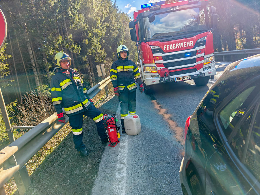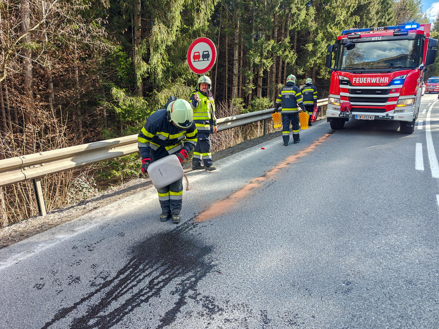 Absichern der Unfallstelle, Binden der ausgelaufenen Betriebsmittel, Freimachen der Bundesstraße