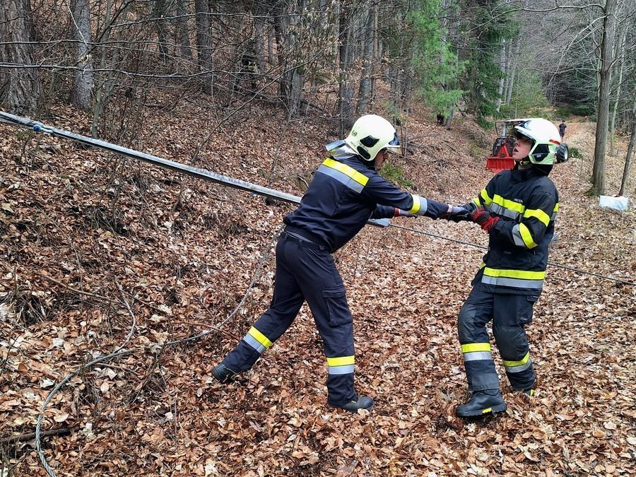 Transport der benötigten Gerätschaften mittels Pickup zum Einsatzort, Binden der ausgelaufenen Betriebsmittel, Bergen des Hofladers mittels Seilwinde und Greifzug