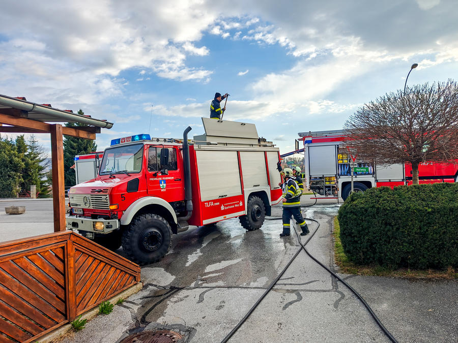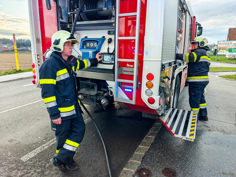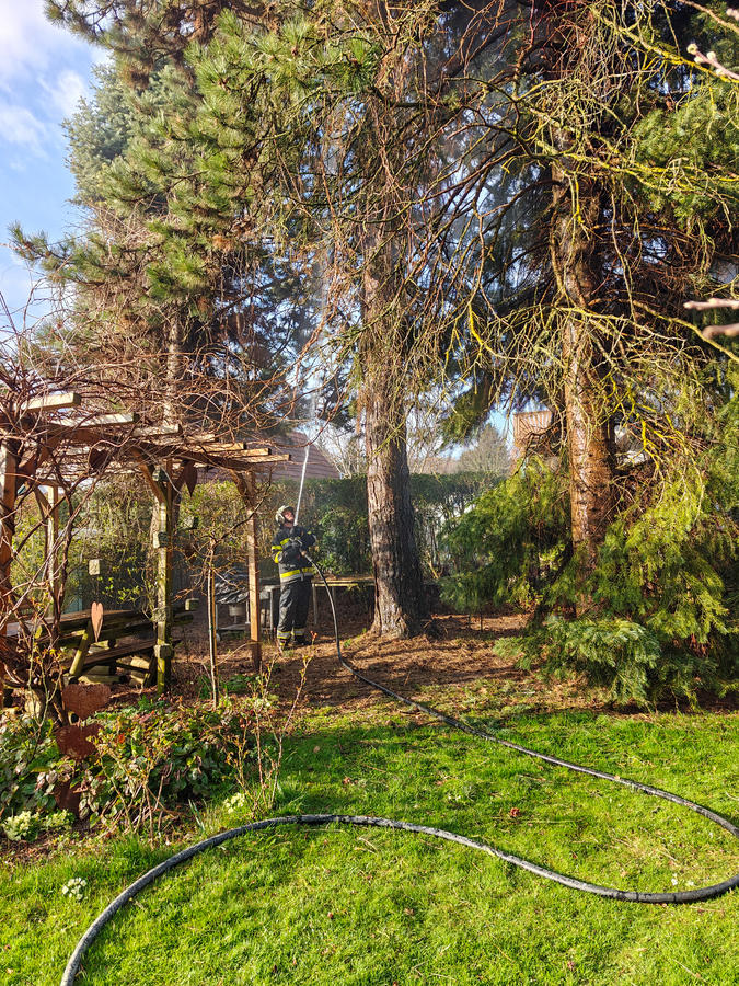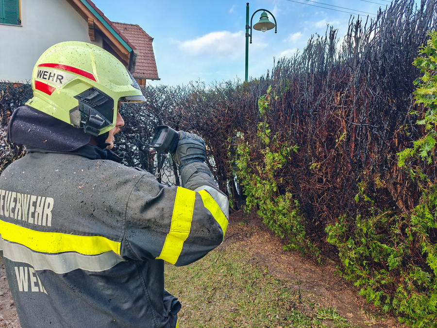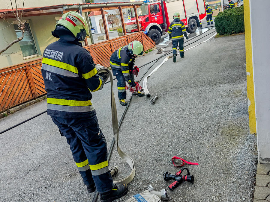 Brandbekämpfung mit zwei HD-Rohren, Kontrolle mittels Wärmebildkamera