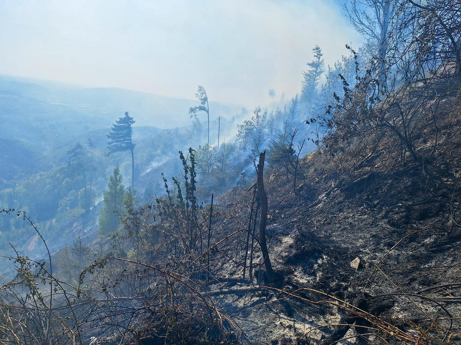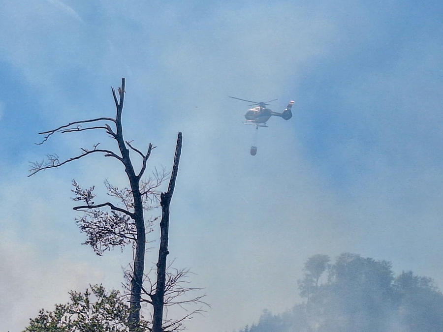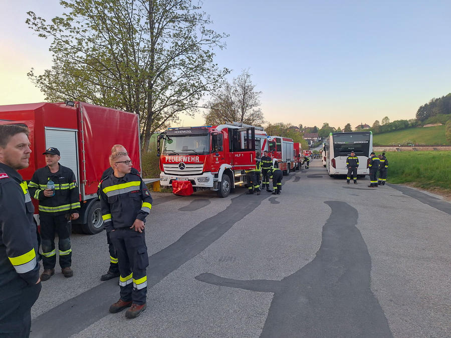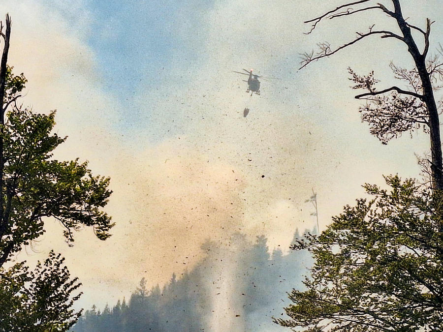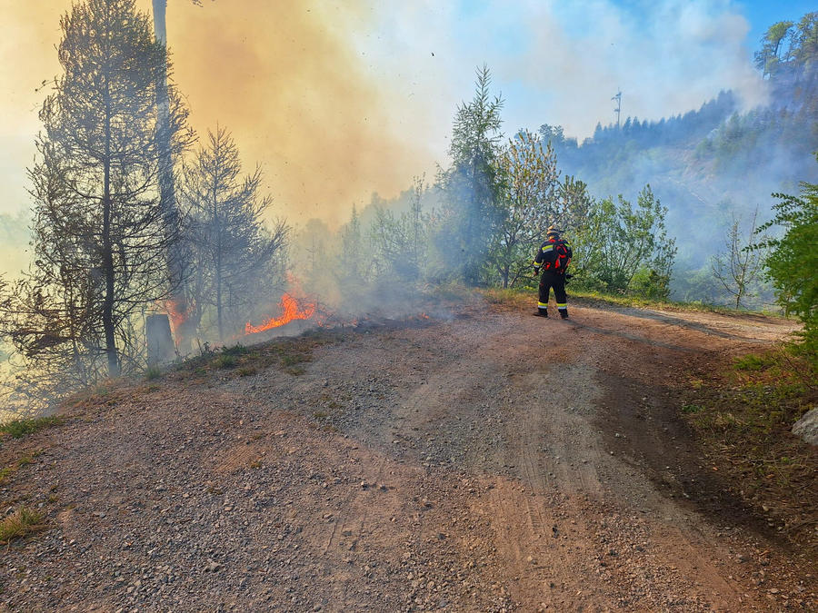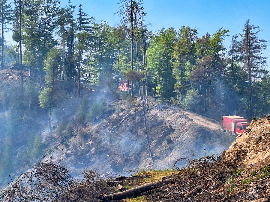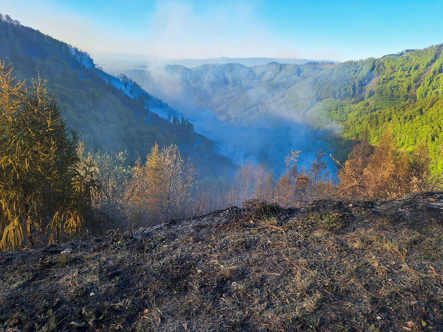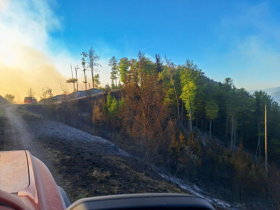 Im Laufe des Vormittags wurde auch das Wechselladefahrzeug mit WAB Wasser/Schaum 8000/500 angefordert. Lt. Information der örtlichen Einsatzleitung breitete sich das Feuer über Nacht durch den Wind aus und es stehen - Stand 26.04. Vormittag - rund 40-50 Hektar Wald in Brand, über 350 Feuerwehrmitglieder sind im Einsatz.