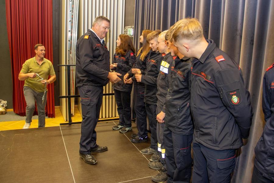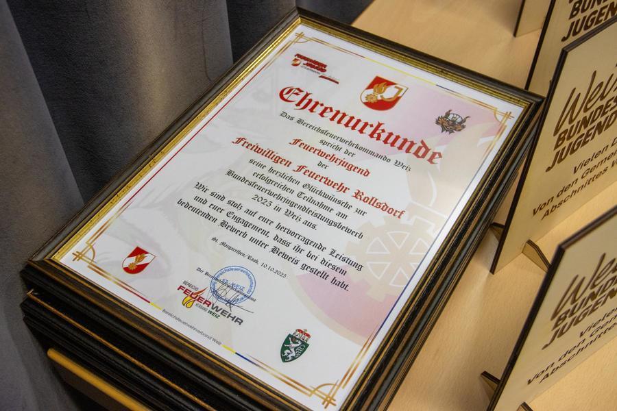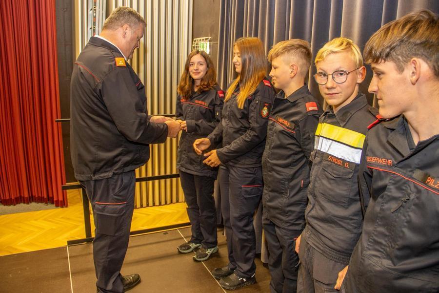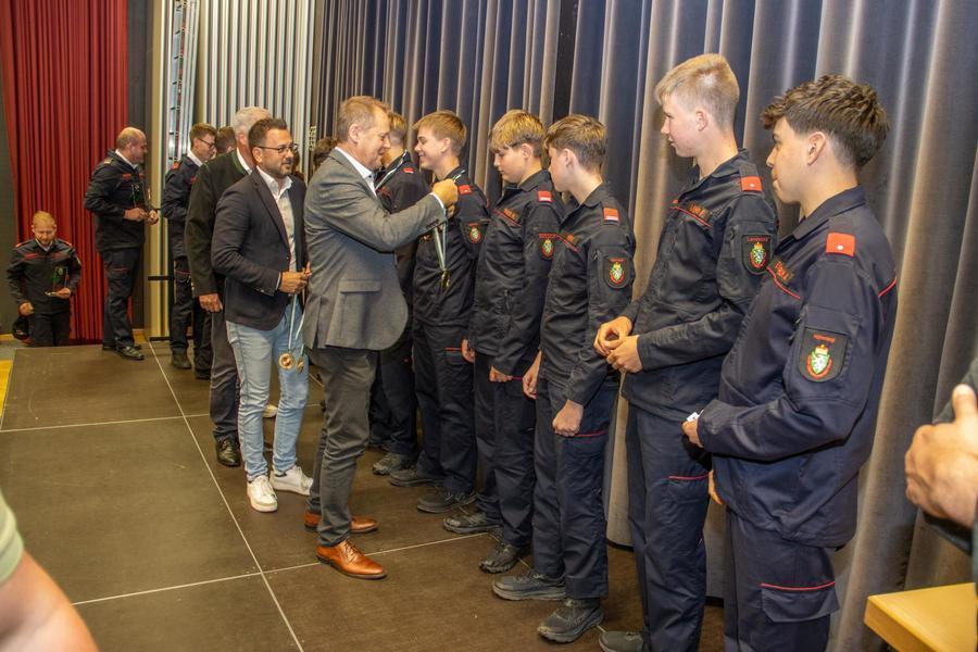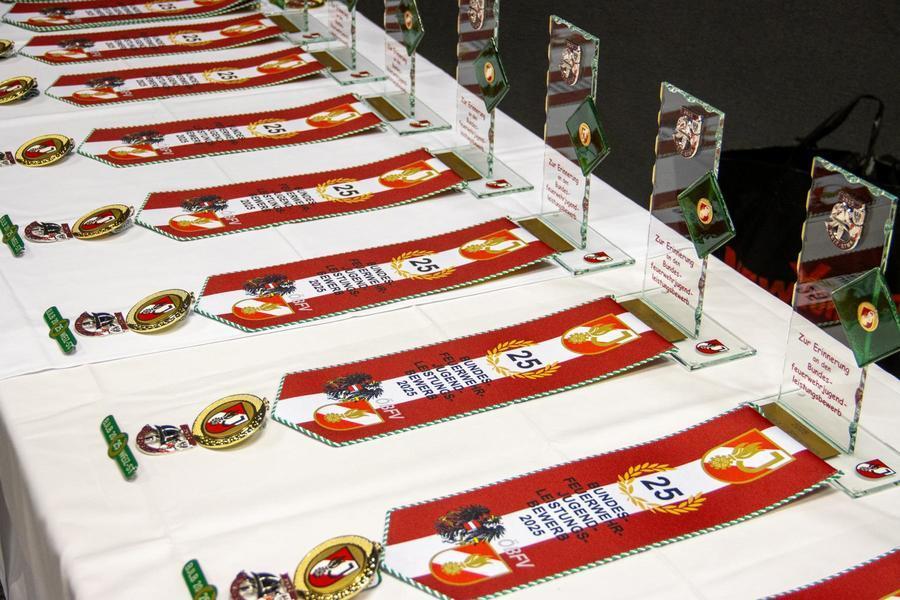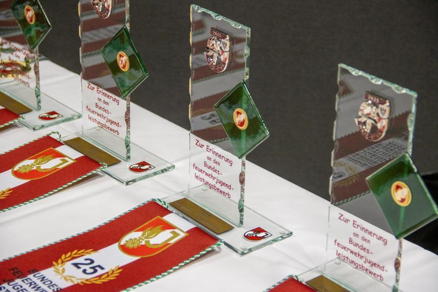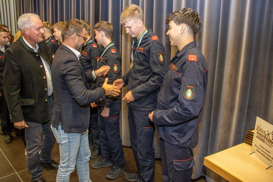 Im Rahmen des Festaktes erhielten die Jugendlichen unserer Bewerbsgruppe des Abschnitts Weiz als Erinnerung an ihre Teilnahme ihr Abzeichen, einen Wimpel, eine Medaille sowie einen Glaspokal überreicht. Für ihren großartigen Einsatz beim Bundesbewerb wurde den Jugendlichen außerdem das Florianikreuz in Bronze des Abschnitts Weiz verliehen.
