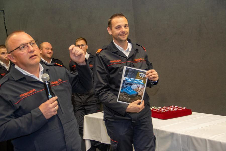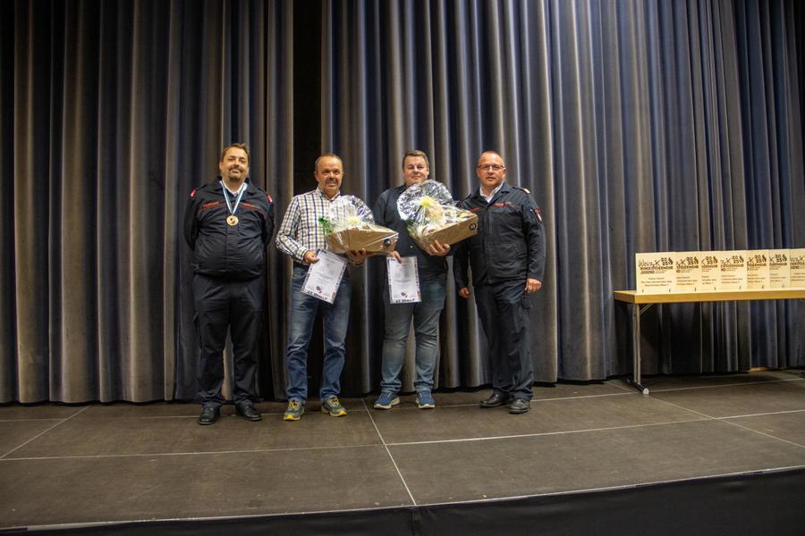 Auch die Jugendbeauftragten der Feuerwehren erhielten ein kleines Andenken als Zeichen der Anerkennung für ihr Engagement. Den beiden Trainern, Franz Ackerl (FF Prebensdorf) und Günter Gradwohl (FF Pischelsdorf), wurde für ihre hervorragende Arbeit ein besonderer Dank ausgesprochen und jeweils ein Geschenkskorb überreicht.