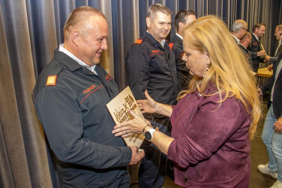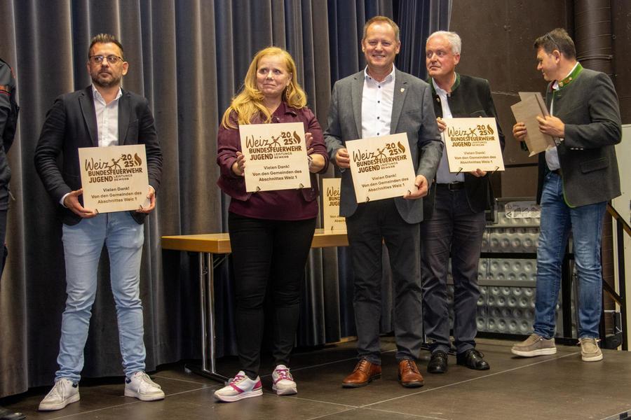Die Bürgermeister der Gemeinden im Abschnitt Weiz nahmen ebenfalls an der Feier teil, bedankten sich bei den Feuerwehren für die Organisation und Durchführung der großartigen Veranstaltung und überreichten jedem Kommandanten ein kleines Präsent als Zeichen der Wertschätzung.