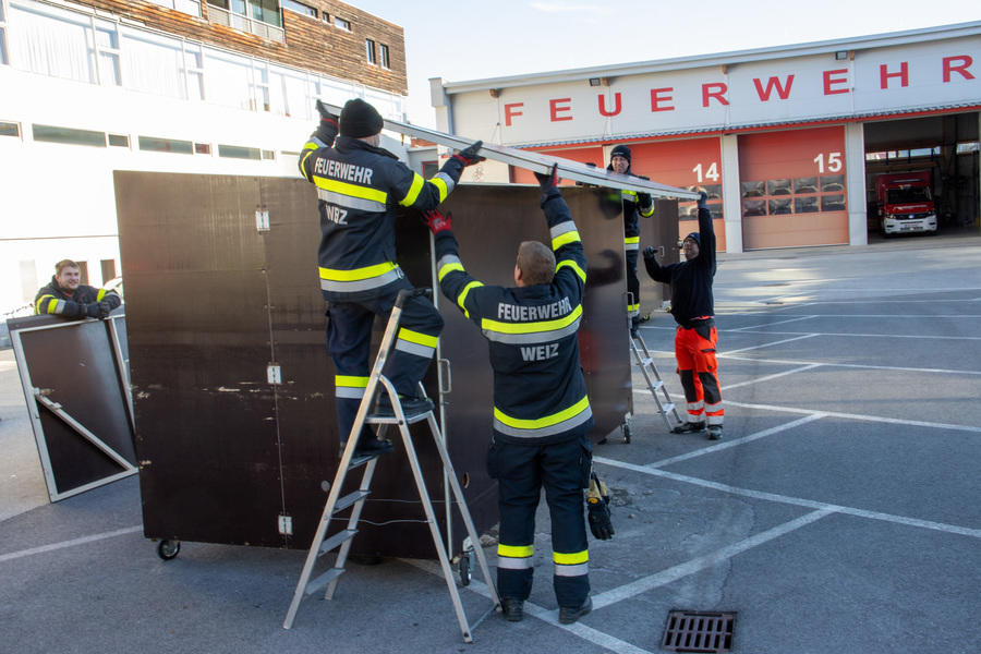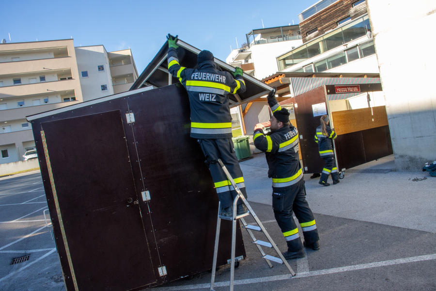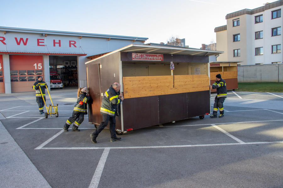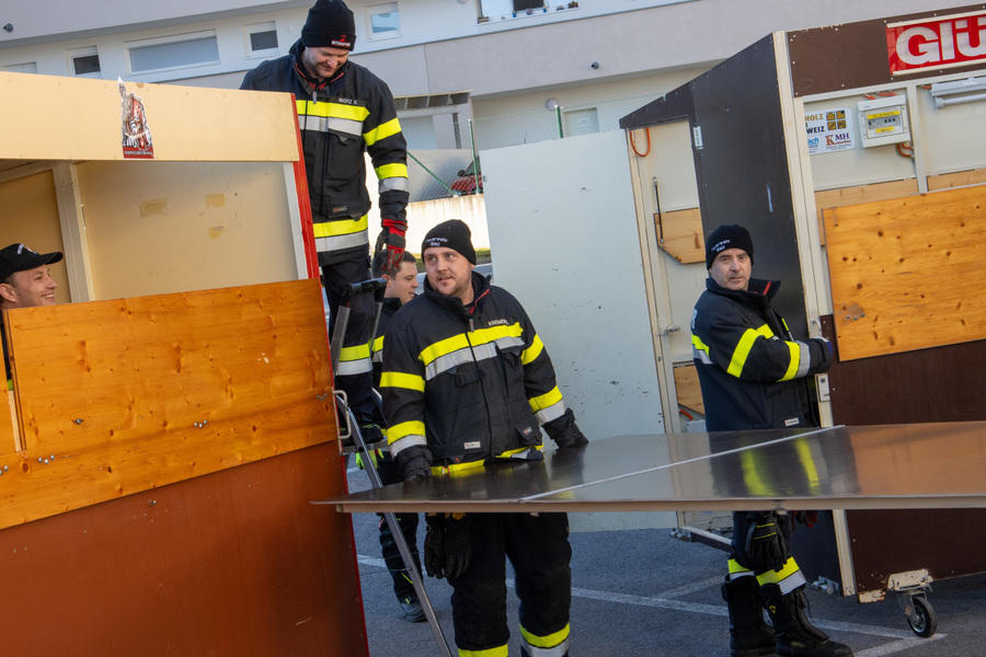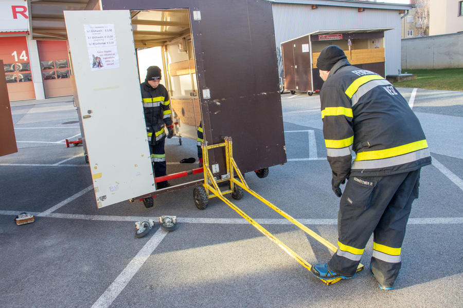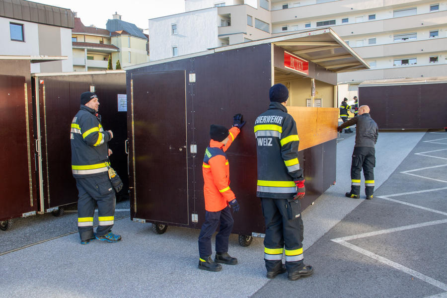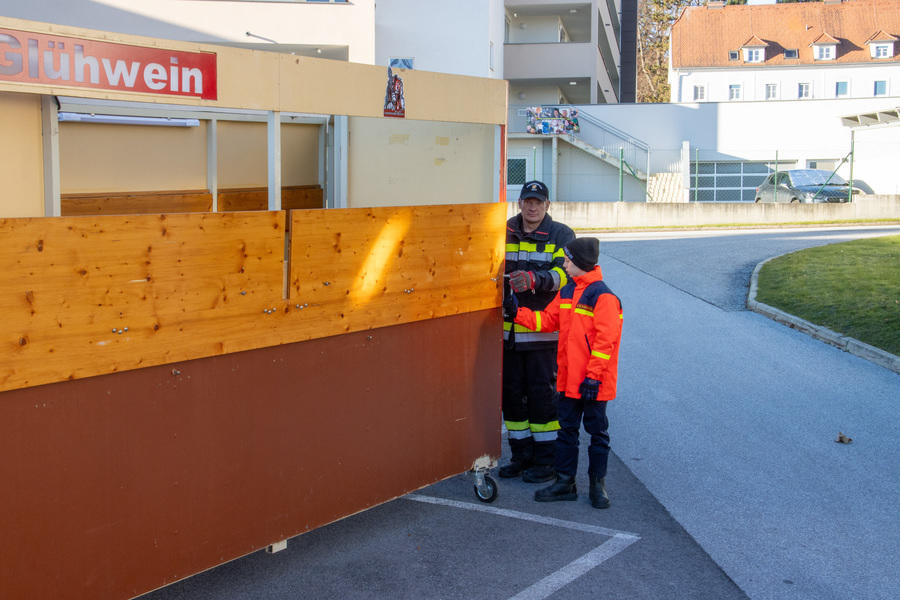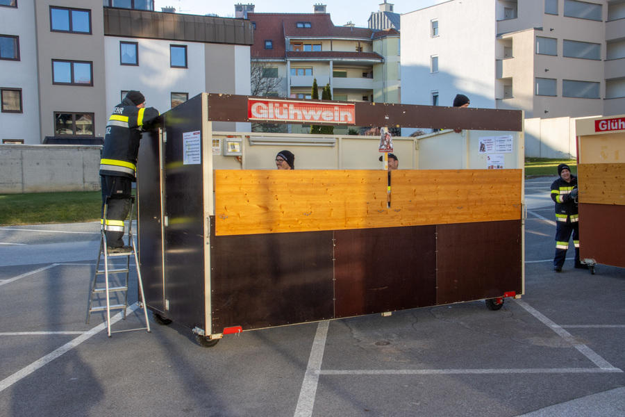 Die Vorbereitungen für den Nikolomarkt am 30. November laufen - heute Vormittag wurden die Stände auf unserem Parkplatz aufgestellt.