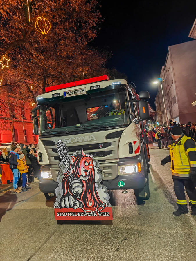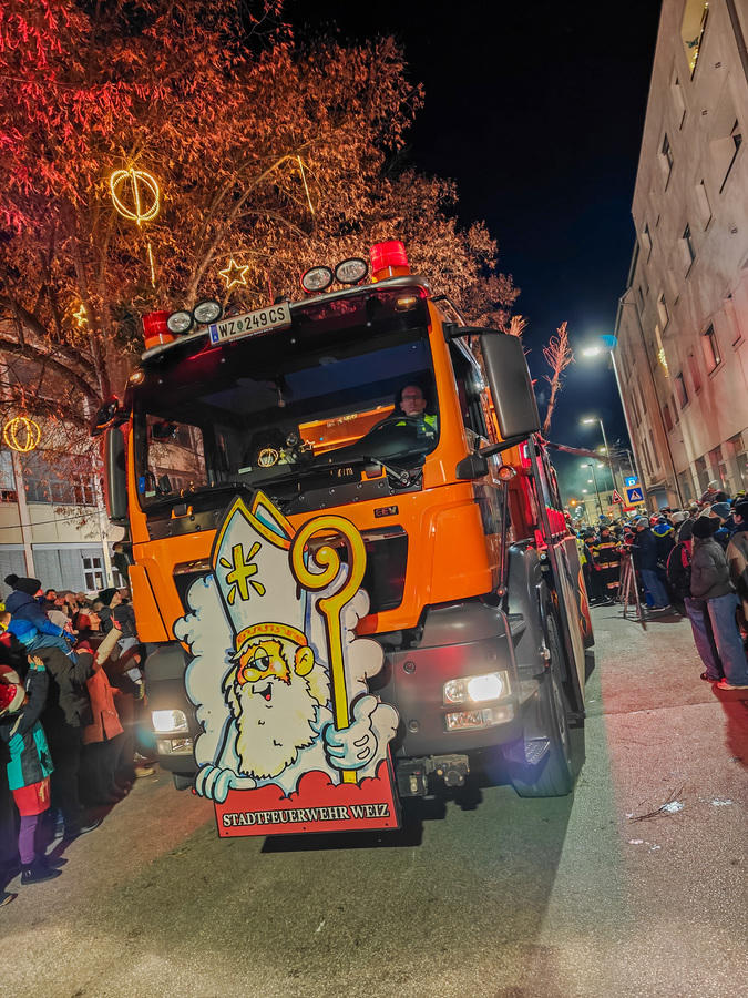 Der 69. Nikolomarkt der Stadtfeuerwehr Weiz am 30. November 2025 war wieder einmal ein voller Erfolg. Auch dieses Jahr zog es wieder mehrere tausend Besucher in die Europa-Allee. Viele wärmten sich bei Glühwein und Tee auf, wer Hunger mitbrachte konnte diesen mit der originalen Weizer Bohnensuppe, Brötchen, Kastanien oder anderen Spezialitäten stillen. Für die Kleinsten stellte das Kasperltheater im Europa-Saal den ersten Höhepunkt des Tages dar. Unmittelbar nach Einbruch der Dunkelheit fuhr der Nikolo mit seinen furchterregenden Krampussen zum ersten Mal an diesem Abend durch die Europa-Allee und verteilte seine mitgebrachten Säckchen an die zahlreichen Kinder. Nach mehreren Durchfahrten konnten die Besucher den Nikolaus mit seinen Krampussen auch hautnah erleben.