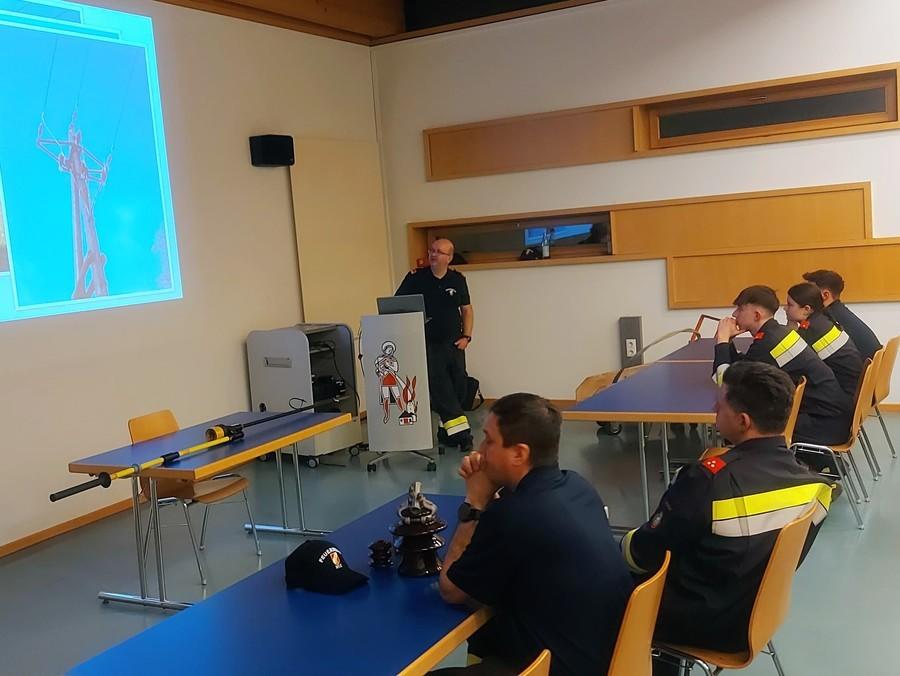 BM Mario Neuhold und OLM Andreas Rosenberger vermittelten Wissen rund um die Gefahren durch Elektrizität im Feuerwehreinsatz und gingen dabei auf wichtige Sicherheitsmaßnahmen ein.