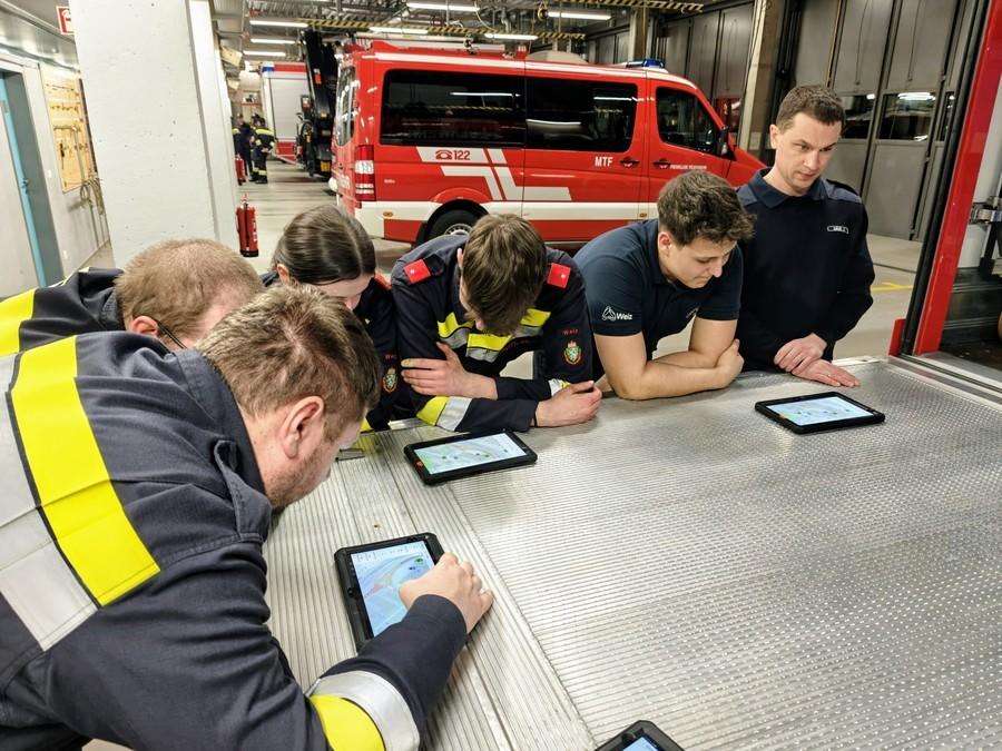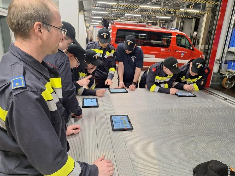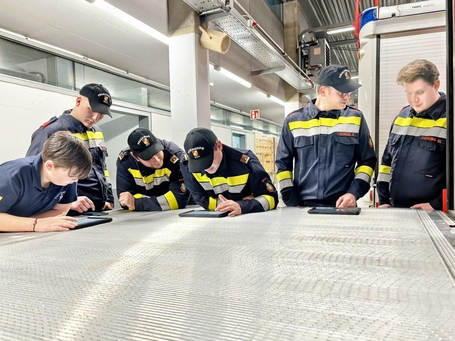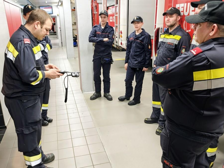 Der Einsatz der Tablets in den Fahrzeugen wurde von BI d.V. Stefan Reisinger behandelt. Praxisnah wurde die Handhabung der Wasserkarte, Brandschutzpläne und Einsatzunterlagen, die Kennzeichenabfrage im österreichischen Zulassungsregister sowie die Verwendung von Rettungskarten beübt.