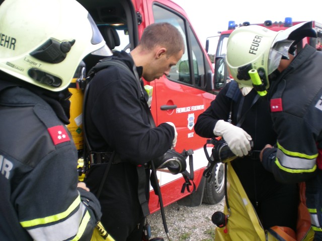 Die Feuerwehr Weiz nahm mit 7 Mann und MTF an der Übung teil und hatte somit die Aufgabe mehrere Fässer mit Gefahrstoff am Übungsgelände zu bergen. Im Übungseinsatz standen vom BFV Weiz die Feuerwehr Weiz mit Chemikalienschutzanzügen und -träger sowie die Feuerwehr Gleisdorf mit der Deko-Einheit.