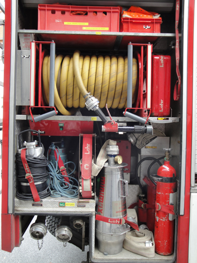 Dieses Fahrzeug dient der Brandbekämpfung. Durch das mitgeführte Löschmittel (Wasser und Schaum) ist